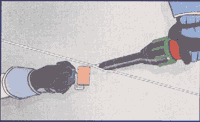 - разогревают аппарат для сварки горячим воздухом (примерно 4-5 мин.) и круглым или плоским соплом проваривают мембраны с внутренней стороны точечным способом,